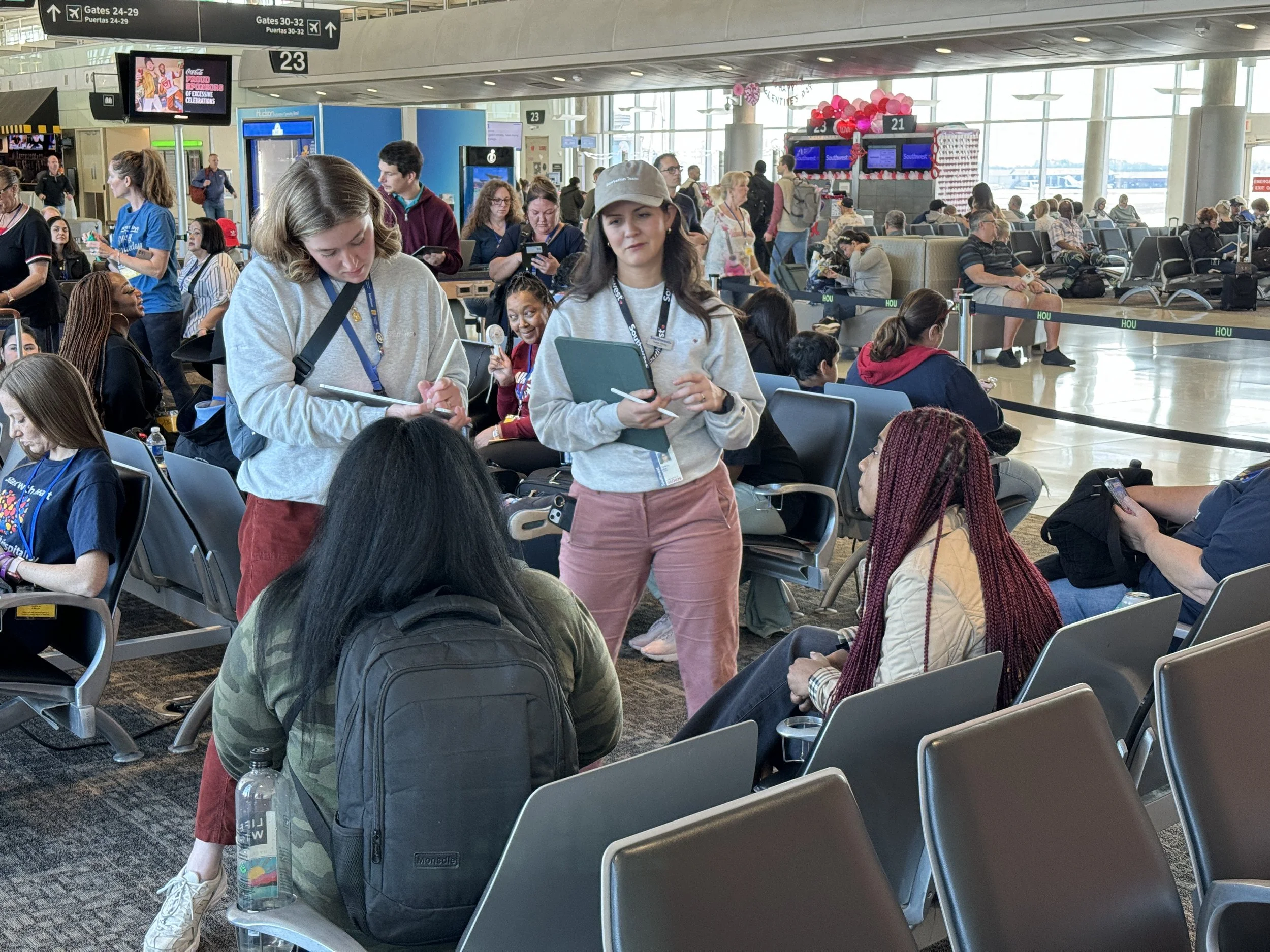 To verify our computer models and evaluate real-world behavior, I designed an extensive in-person simulation with over 400 participants across 11 rounds of testing over two days. I personally created over 4,400 boarding passes and coordinated multiple research teams collecting observational data, surveys, and interviews. This large-scale test validated that our computer simulations accurately predicted boarding times within one standard deviation and revealed that sequenced boarding improved efficiency by 14% while creating unexpected perception challenges among passengers.